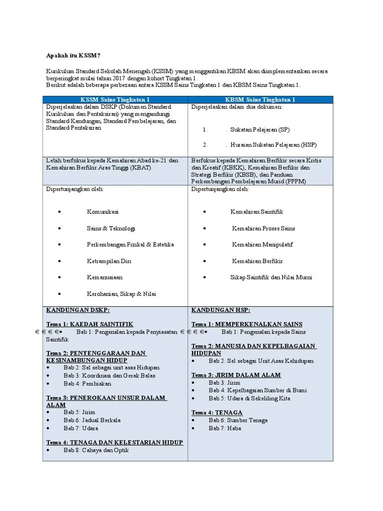3 mata pelajaran dan peruntukan waktu kssm . Kbsr / kssr kbsm/ kssm ringkaskan dapatan anda dengan bantuan pengelola grafik yang sesuai (peta. You can also bookmark this page . 1 perbezaan kbsm dan kssm.